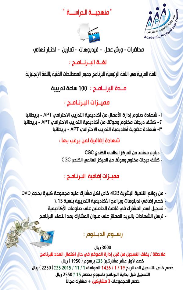 1- شهادة دبلوم إدارة الأعمال من أكاديمية التدريب الاحترافي APT - بريطانيا
